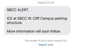 SCOOP: Das Community College von Santa Barbara hat diesen Textalarm gesendet, dass ICE in der Nähe des Campus gesichtet wurde.