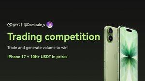 Faça trade e gere volume para ganhar com um prêmio total de 10.250 USDT, iPhone 17 e produtos Grvt!