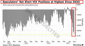 净空头$VIX头寸达到了自2022年以来的最高水平。