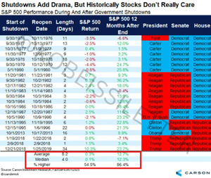 事实上,86%的停摆事件导致标准普尔500指数在12个月后收盘时上涨,平均涨幅为+12.7%。