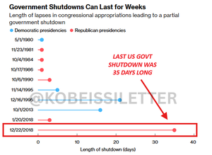 我们上一次进入政府停摆是在2018年12月,那是特朗普的第一任期。