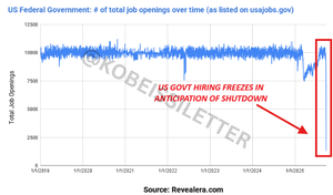 职位空缺从大约10,000个降至仅约1,300个,短短几天内停摆的可能性激增。