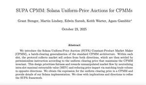 是時候公開 SUPA CPMM 的白皮書了! SUPA 是一種新穎的批量拍賣 AMM 架構,能以統一的清算價格結算訂單。 這種設計中和了夾擊行為,從而保護交易者並降低流動性提供者的成本。 了解更多 👇