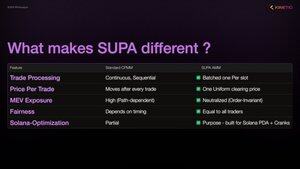 SUPA 是一種下一代 AMM 架構,它在 Solana 時隙(約 400 毫秒)內批量處理所有提交的交易,在下一個時隙開始時確定清算價格,並通過無需許可的 crank 進行結算。